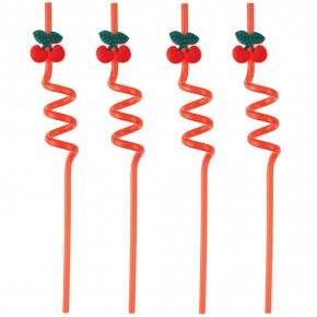 Трубочки для коктейлей (пластик), Вишенки, Красный, 4 шт. в упак. купить в интернет-магазине по доступной цене