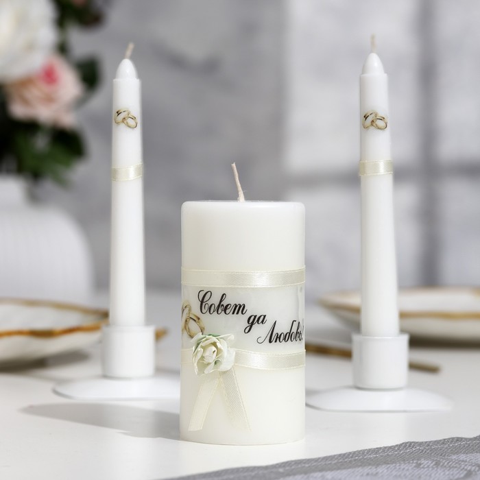 ГлавнаяКаталогСвечи и подсвечникиСвадебные свечиНабор свадебных свечей "Совет да любовь с лентой" шампань